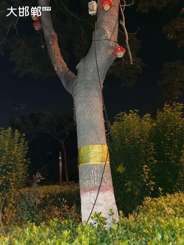 建设大街先锋路口南20米路东花坛内树上线缆垂落至地面,存安全风险