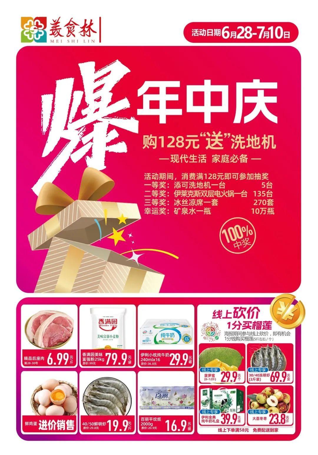 1、6.28-7.10期间,凡进店消费满128元顾客,均可参加抽奖一次,256元可抽二次,单张小票最多抽3次;
