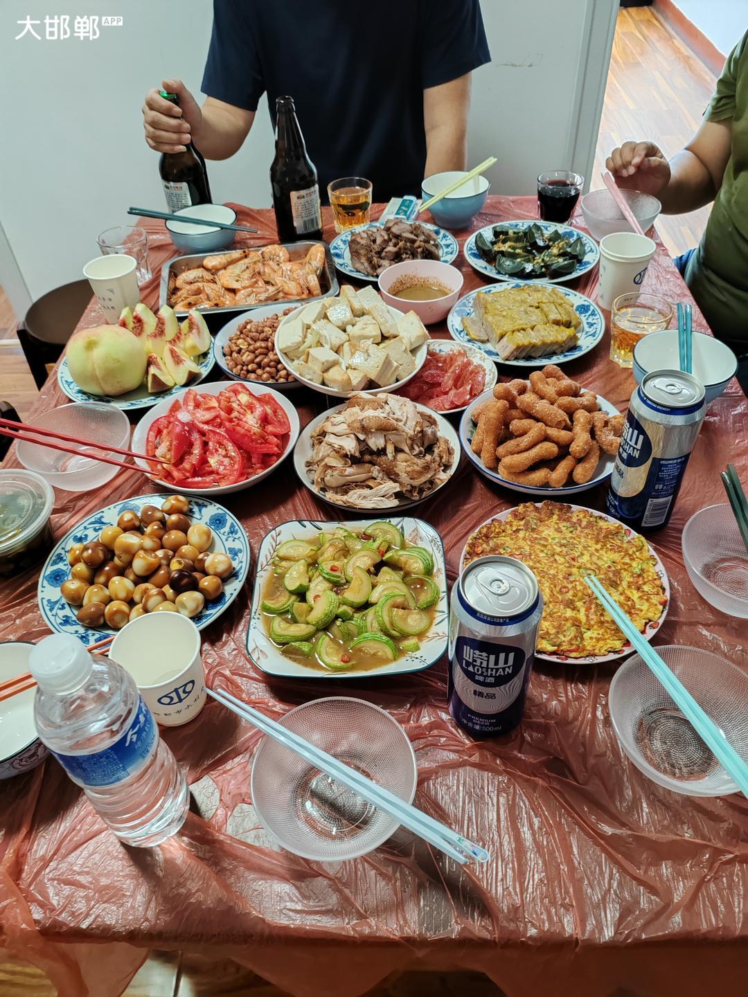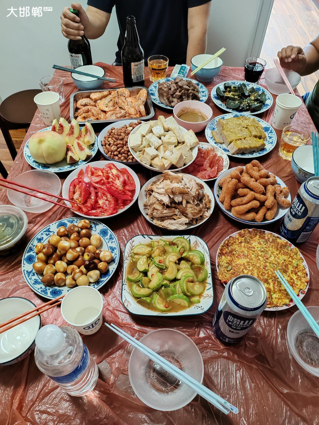 今天上午,邻居们说着话,就说来了一场饭局😀😀各家准备几个菜 ,凑成一桌美餐。辣椒炒鸡蛋,素炒西葫芦,还有一个腊肠是我配的菜,腊肠上桌晚,没有拍上,豆腐我炒的,邻居不让放酱油,只放盐,颜色不美。热热闹闹到下午四点多结束。