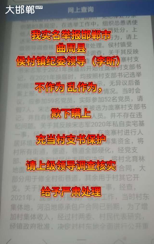 被检举人:宋志军,邯郸市曲周县侯村镇庞寨村党支部书记。