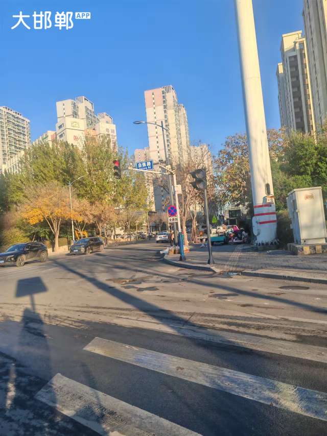 邯郸今天早上在自强路口这结冰了,厚厚一层,早上过这个路口减速,一下甩出路口去了,把我和孩子摔个狗吃屎。还好是红灯,没有车开出来,要不然不是车撞我,就是我撞车~