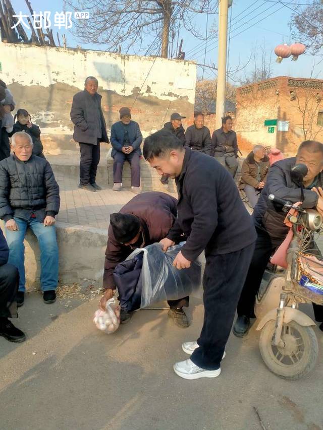 这场由邓庄村党支部书记杜继平牵头主办的爱心活动,聚焦村里的孤寡老人,用实实在在的关怀,传递着中华优秀孝敬文化的温度。村妇联主任、副书记毕改红走上台前,清亮的嗓音回荡在广场上空:“今天,咱们为村里70岁以上的孤寡老人送上暖心棉袄,80岁以上的老人们,还能额外领到五斤鸡蛋!”话音刚落,掌声便如潮水般涌来。