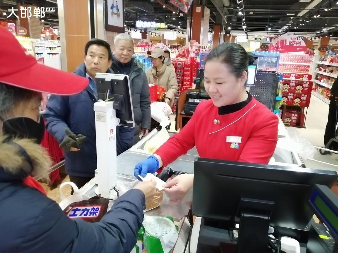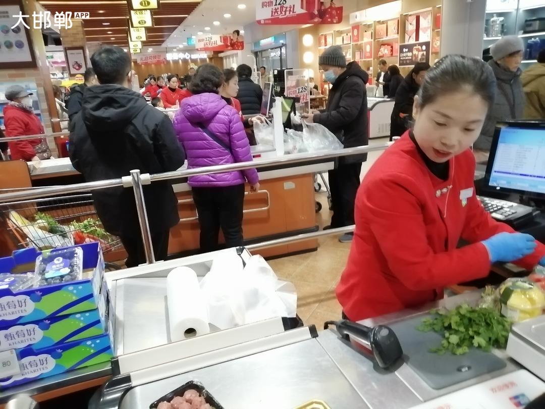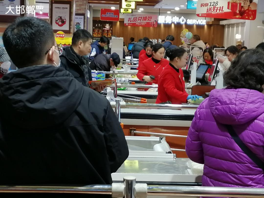 2025年**一天:邯郸滏东美食林超市:收银员姑娘们笑迎八方客