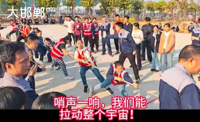 “嘟——!”清脆的哨声划破长空,瞬间点燃了全场的激情。队员们齐声发出震天呐喊,这呐喊是力量凝聚的信号,更是士气昂扬的宣言。双手紧握的麻绳瞬间绷直如钢,红色标记带在中线两侧开始艰难拉锯,每一寸位移都牵动着全场的心弦。前排队员牙关紧咬,脸庞因用力而涨红,额角汗珠滚滚滑落;中间队员如坚固的链条,将前后力量无缝传导,脚步坚定毫不动摇;后排的“定海神针”们身体几乎与地面平行,双腿如铁塔般稳固,每一次发力都沉稳而持久。鞋底与地面摩擦发出的“吱呀”声,队员们粗重的呼吸声,与场边“德金加油!同心必胜!”的助威声交织在一起,汇成一曲激昂的奋斗乐章。