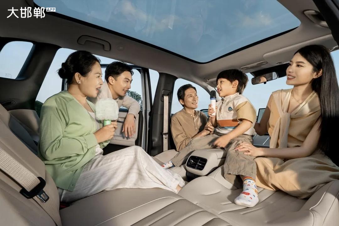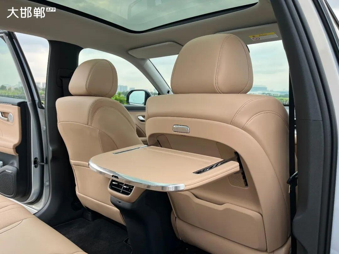 座舱内部采用翼展式环抱设计,燕麦奶白等低饱和度配色搭配大量软质包覆,婴儿级环保皮质座椅自带加热、通风与8点式按摩功能,2.26㎡全景天窗与32色柔光氛围灯,共同营造出“移动起居室”的温馨质感。