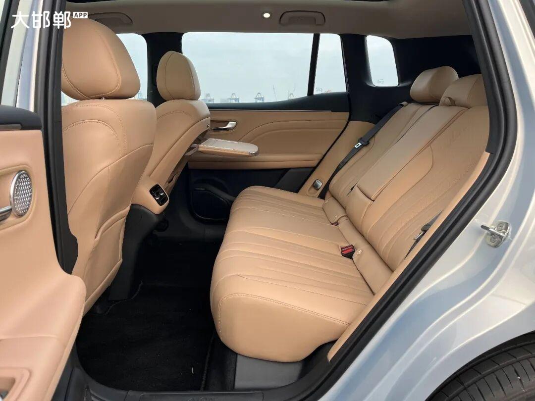 空间实用性上,埃安i60的越级表现同样令人惊艳。基于2775mm超长轴距,新车打造出1037mm后排腿部空间,180cm身高乘客乘坐仍有三拳余量,纯平地台设计彻底解决中间乘客的局促感。近90度开启的后门,方便老人上下车与宝妈安装儿童座椅;416L常规后备厢可轻松容纳8个20寸登机箱,放倒后排后拓展至967L,露营装备、婴儿车等大件物品均可从容收纳,完美匹配家庭出行的储物需求。