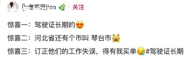 刚刚在抖音里看到一个视频,是工作人员文化水平的原因还是其他原因?竟然把驾照上的邢台打印成琴台,希望相关部门加强对员工培训和监督管理,不要让此类事情再次发生。