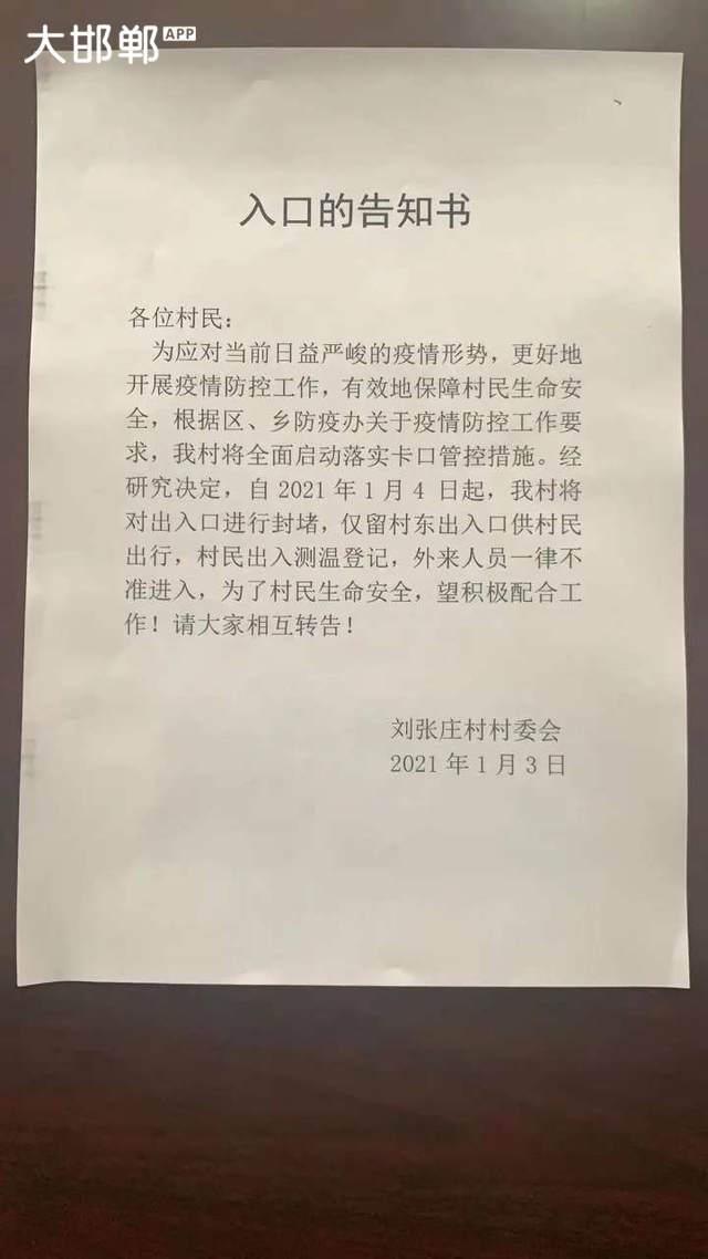 邯郸一村支书喊话:大家都要注意了啊,随时做好一切防疫准备!