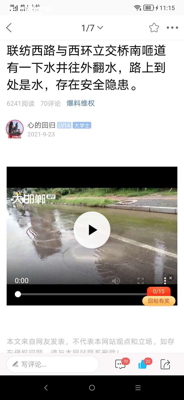 联纺西路与西环立交桥南匝道有一下水井往外翻我,大邯郸关注后已清理。