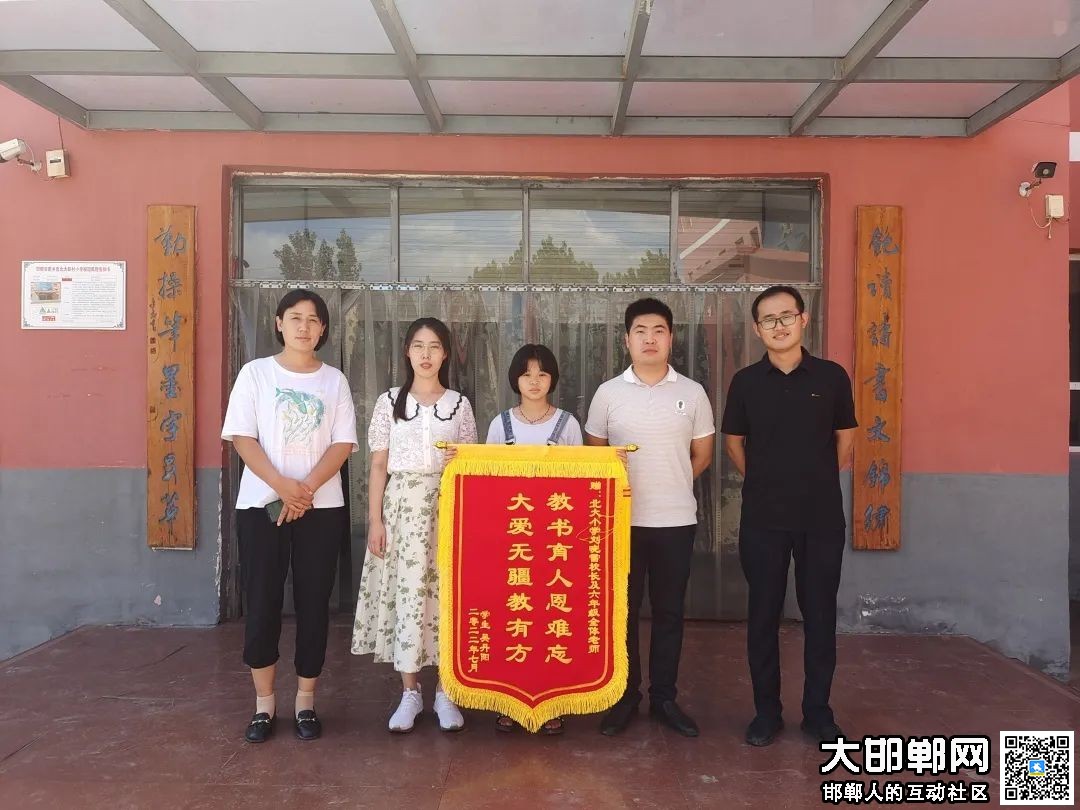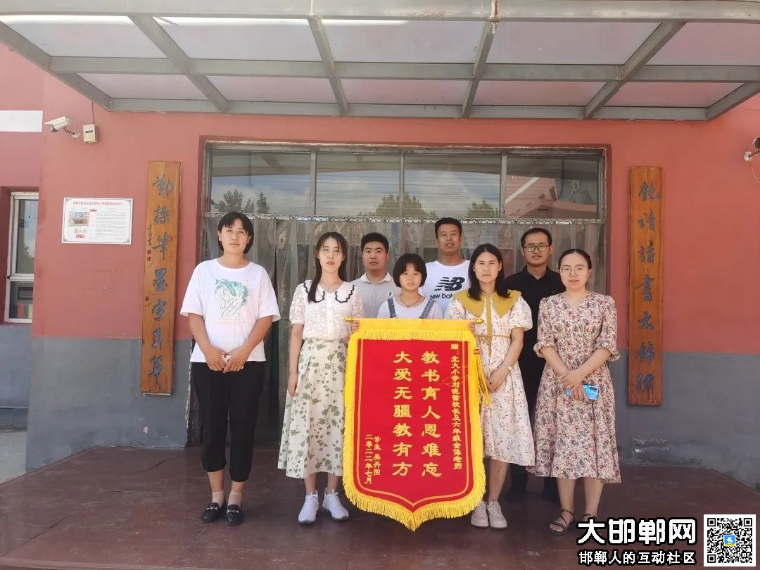 2022年7月6日,六年级吴丹阳家长给北大靳村小学及六年级全体教师送来“教书育人恩难忘,大爱无疆教有方”锦旗,我们将不辱使命,砥砺前行,办家门口让人民满意的教育!