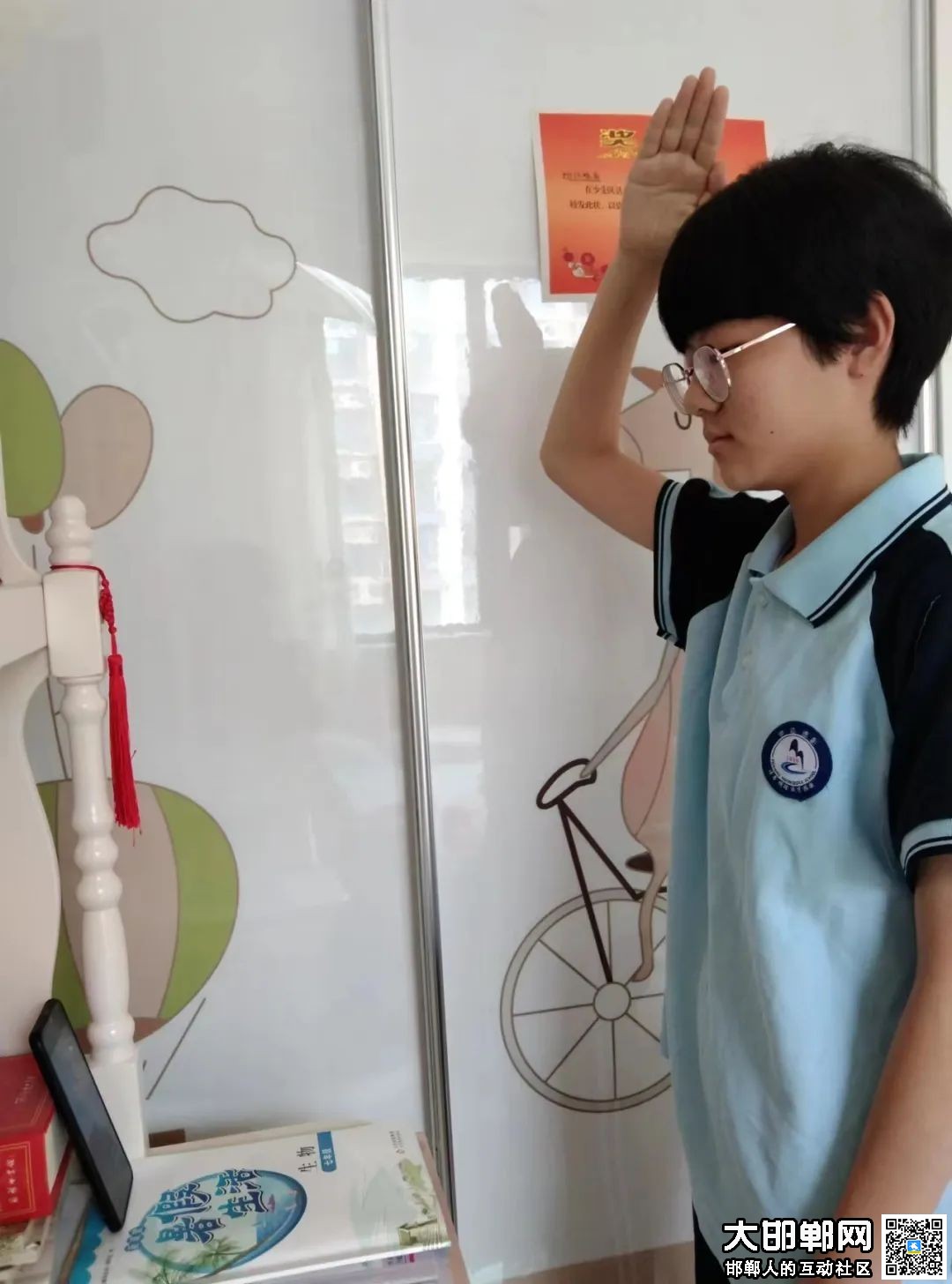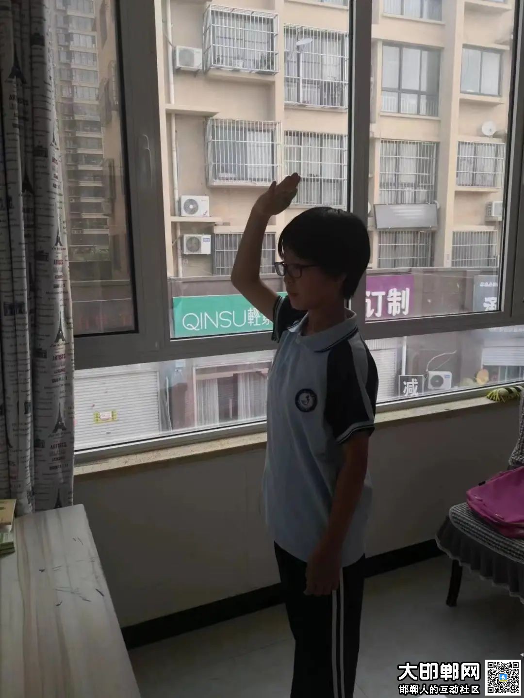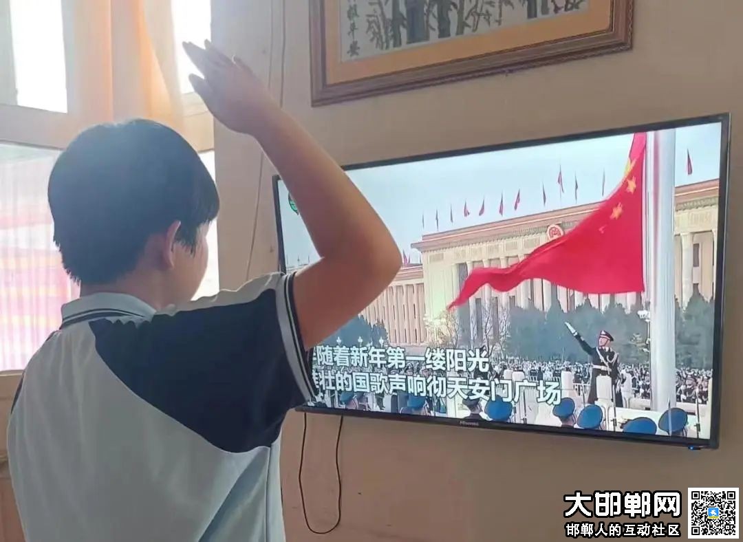 学校精心准备了天安门升旗仪式视频,全体学生穿着整洁的校服,面对升旗画面,行注目礼,跟唱《中华人民共和国义勇军进行曲》,居家接受一场深刻的爱国主义教育。